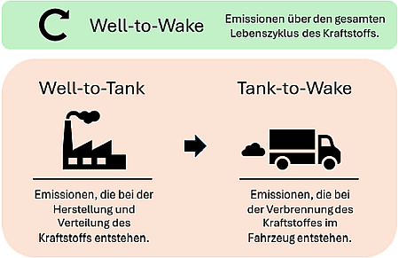 Für die THG-Emissionen aus Transportleistungen sind dabei vor allem die aus der Verbrennung von Kraftstoff im eigenen Fuhrpark (Scope 1) relevant bzw. für Fahrzeuge mit einem Elektroantrieb die aus Scope 2. Transporte, die durch Drittunternehmen im Auftrag des berichtenden Unternehmens durchgeführt werden, sind in den Scope 3-Unterkategorien 4 oder 9 zu berichten. Die THG-Emissionen, die für die Herstellung eines Kraftstoffs anfallen, müssen in der Scope 3-Unterkategorie 3 „Brennstoff- und energiebezogene Aktivitäten (nicht in Scope 1 oder Scope 2 enthalten)” berichtet werden. Diese Unterscheidung geht auf die Verantwortlichkeit der THG-Emissionsquelle zurück. Bei den sogenannten Well-to-Tank(WTT)-THG-Emissionen werden solche berücksichtigt, die auf die Vorkette des Kraftstoffs bis zur Betankung in das Fahrzeug zurückzuführen sind. Die THG-Emissionen, die innerhalb des Fahrzeugs durch die Verbrennung des Kraftstoffs und die Umwandlung in Energie entstehen, sind unter die Tank-to-Wheel- bzw. Tank-to-Wake(TTW)-Kategorie zu fassen. In Bezug zum Greenhouse Gas Protocol Standard sind diese je nach Verantwortung auch in verschiedenen Kategorien zu berichten. Die Gesamtemissionen eines Transports von der Herstellung des Kraftstoffs bis zur Verbrennung im Fahrzeug werden in diesem Kontext Well-to-Wake (WTW) genannt.