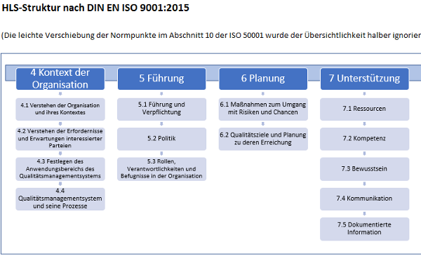 HLS – was bedeutet das überhaupt für den Anwender? Für Managementsystemnormen wurde eine einheitliche und kompatible Struktur eingeführt, die ab Abschnitt 4 wie folgt aussieht:
