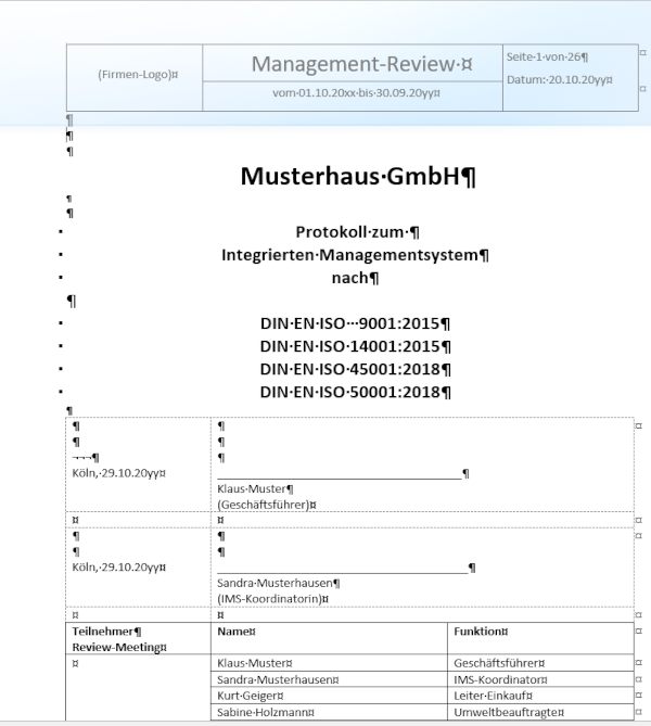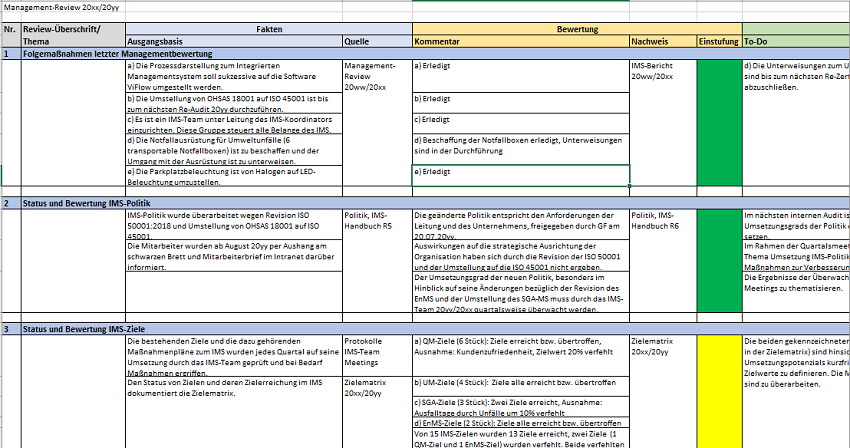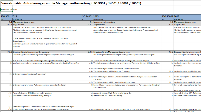 Im Kern des Beitrags erfahren Sie, wie Sie bei einem integrierten System aus ISO 9001, ISO 14001, ISO 45001 und ISO 50001 eine normenkonforme und trotzdem übersichtliche Managementbewertung durchführen können, was Inhalt der dokumentierten Bewertung sein muss und was ggf. in andere begleitende Dokumente (Anlagen) ausgelagert werden kann.