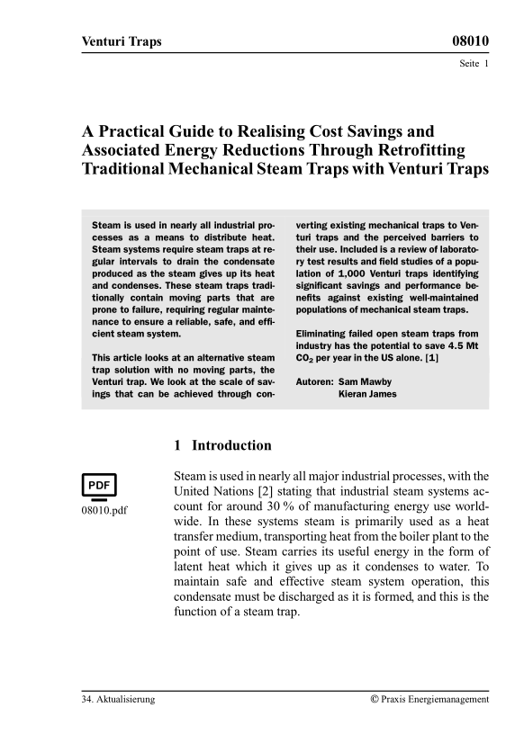 08009 Ein Leitfaden zur Kosten- und Energieeinsparung durch den Austausch von herkömmlichen mechanischen Kondensatableitern mit Venturi-Kondensatableitern